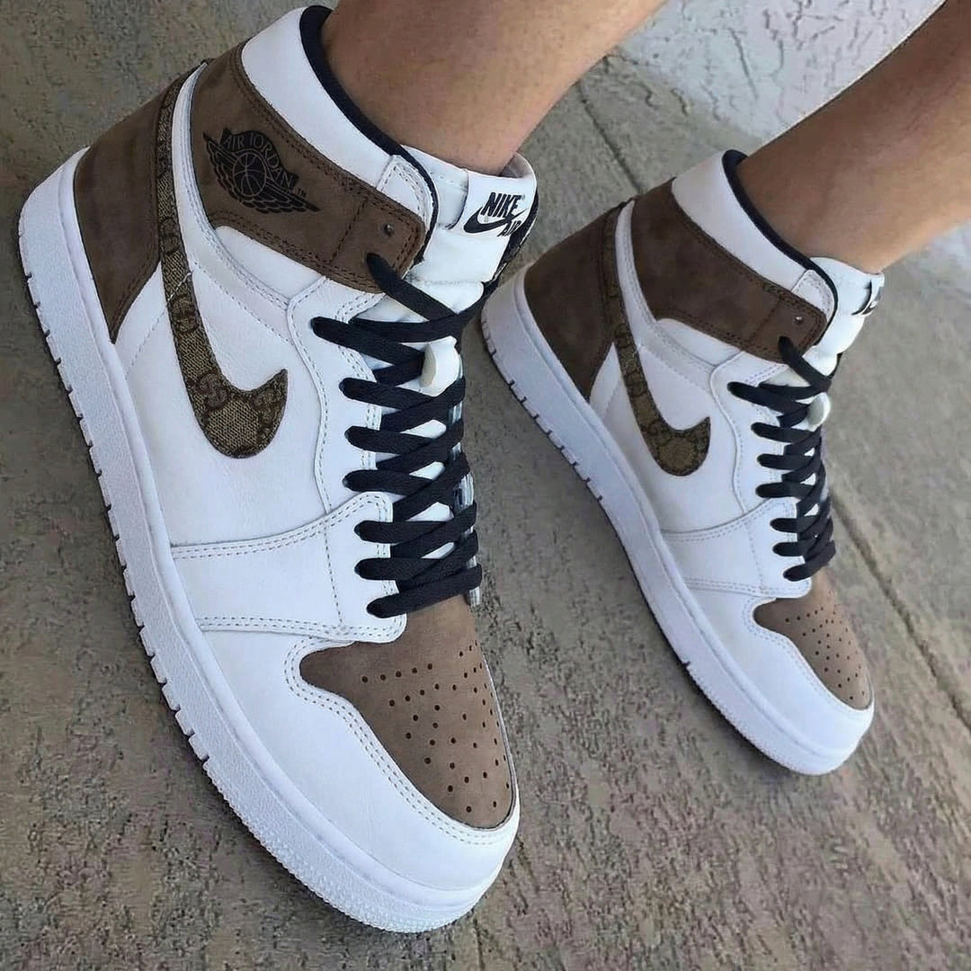 LV Pattern Beige Brown Travis Scott Custom Air Jordan 1