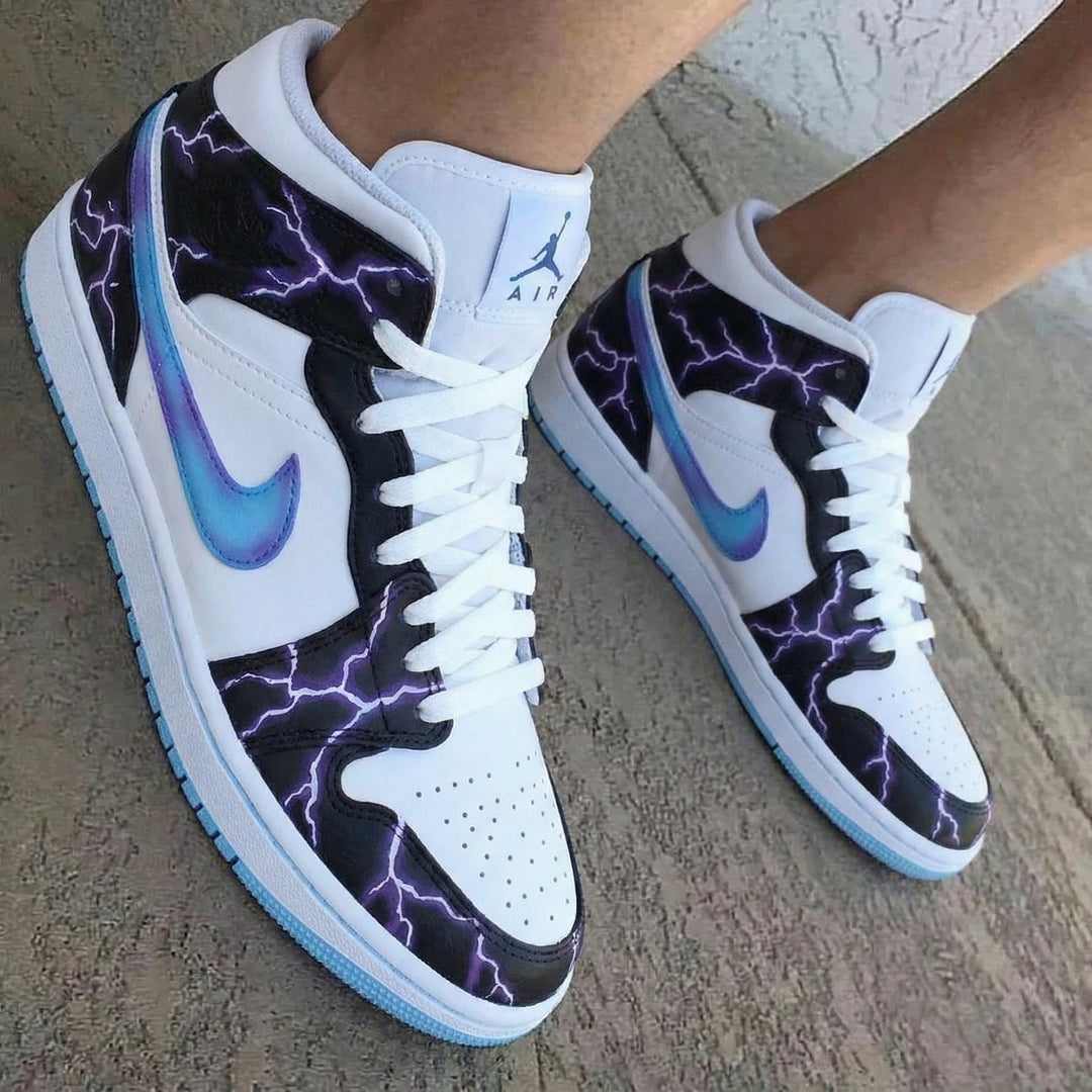 Lightning Pattern Black Baby Blue Custom Air Jordan 1