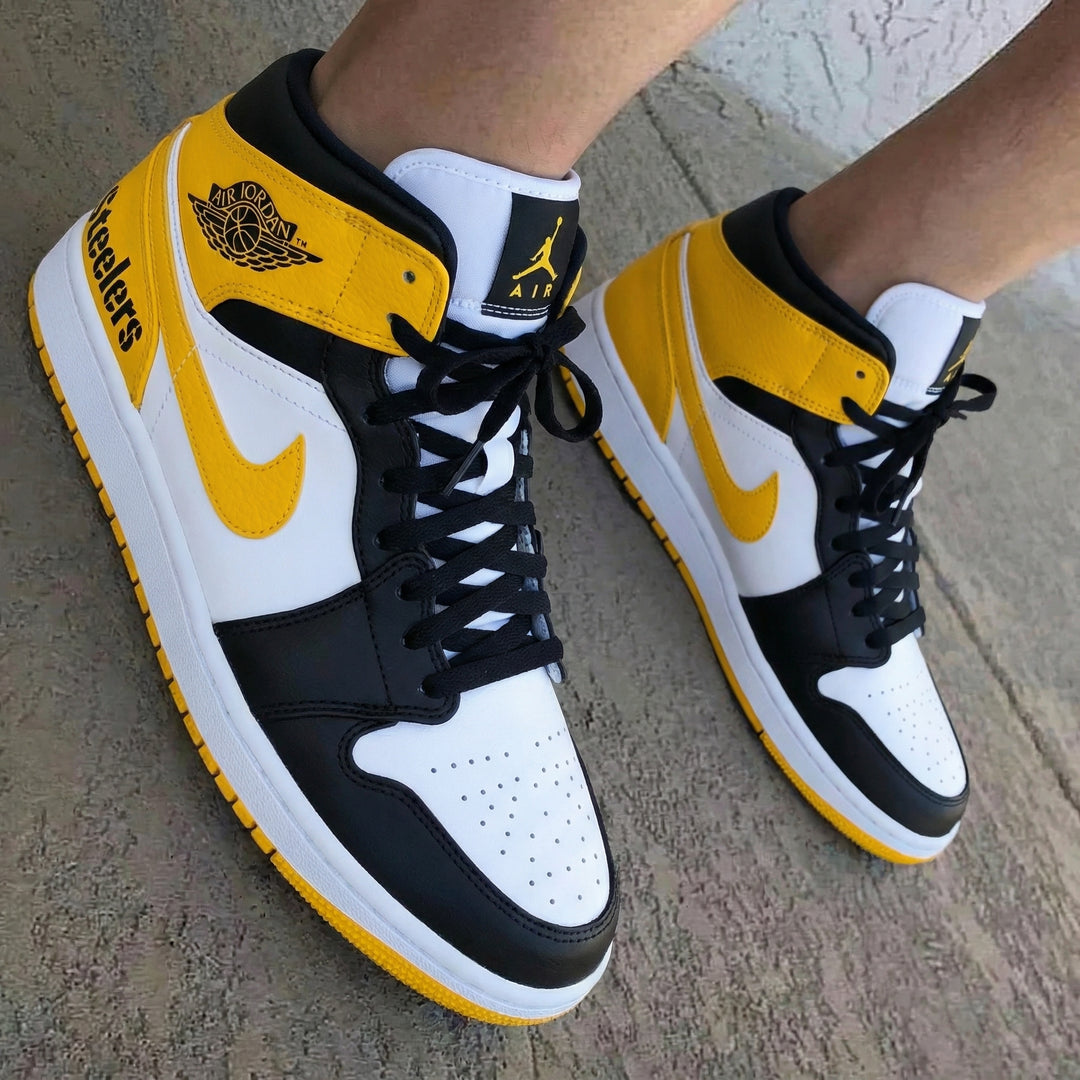 Steelers Theme Black Yellow White Custom Air Jordan 1
