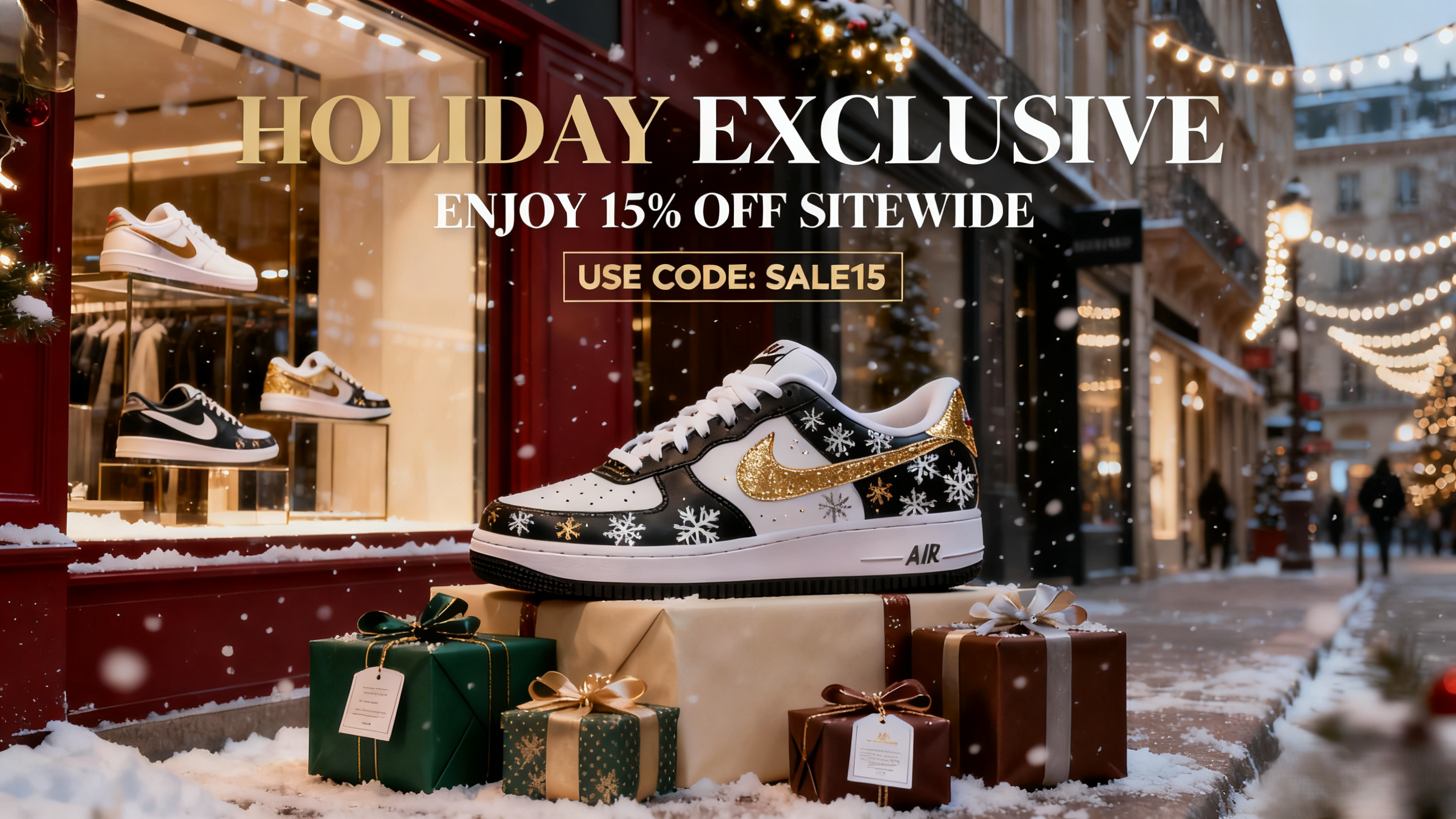 Custom Air Force 1 White With Holly And Snowflake Patterns