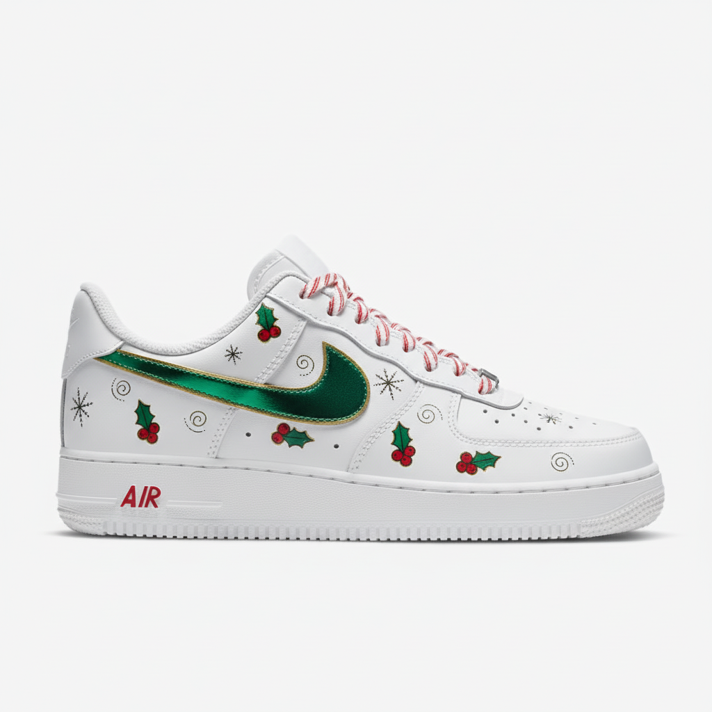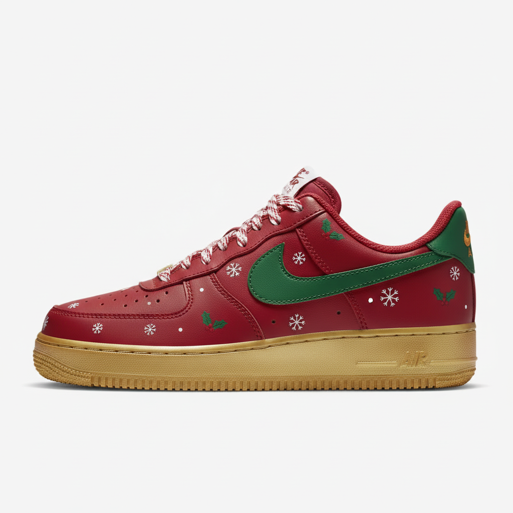 Custom Air Force 1 Red Snowflakes And Holly Design