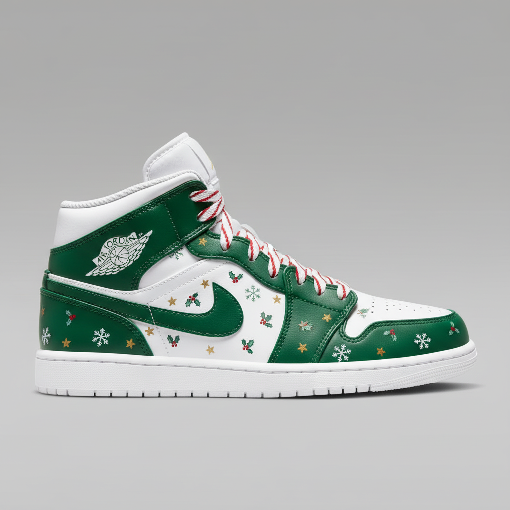 Custom Air Jordan 1 Green Red White Christmas Theme