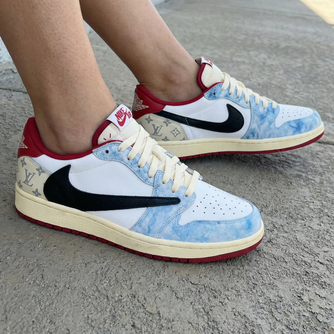 LV Pattern Baby Blue Black Red Travis Scott Custom Air Jordan 1