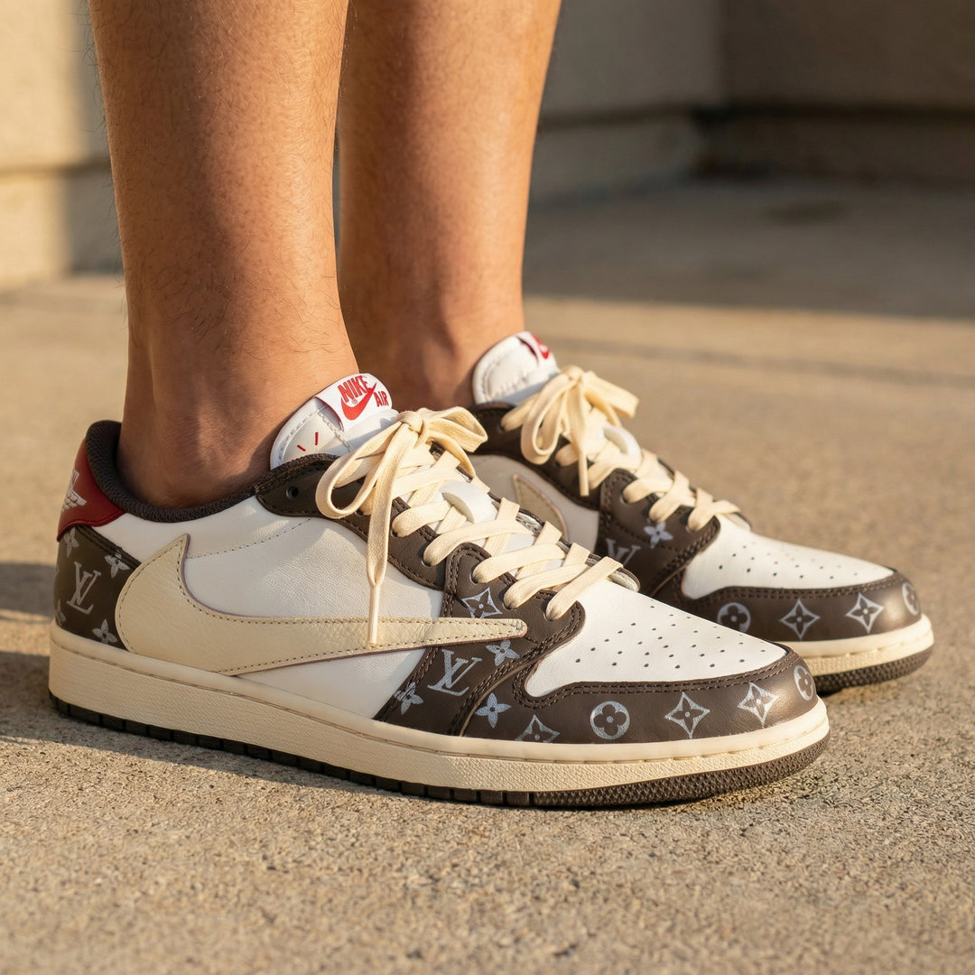 LV Pattern Beige Brown Travis Scott Custom Air Jordan 1