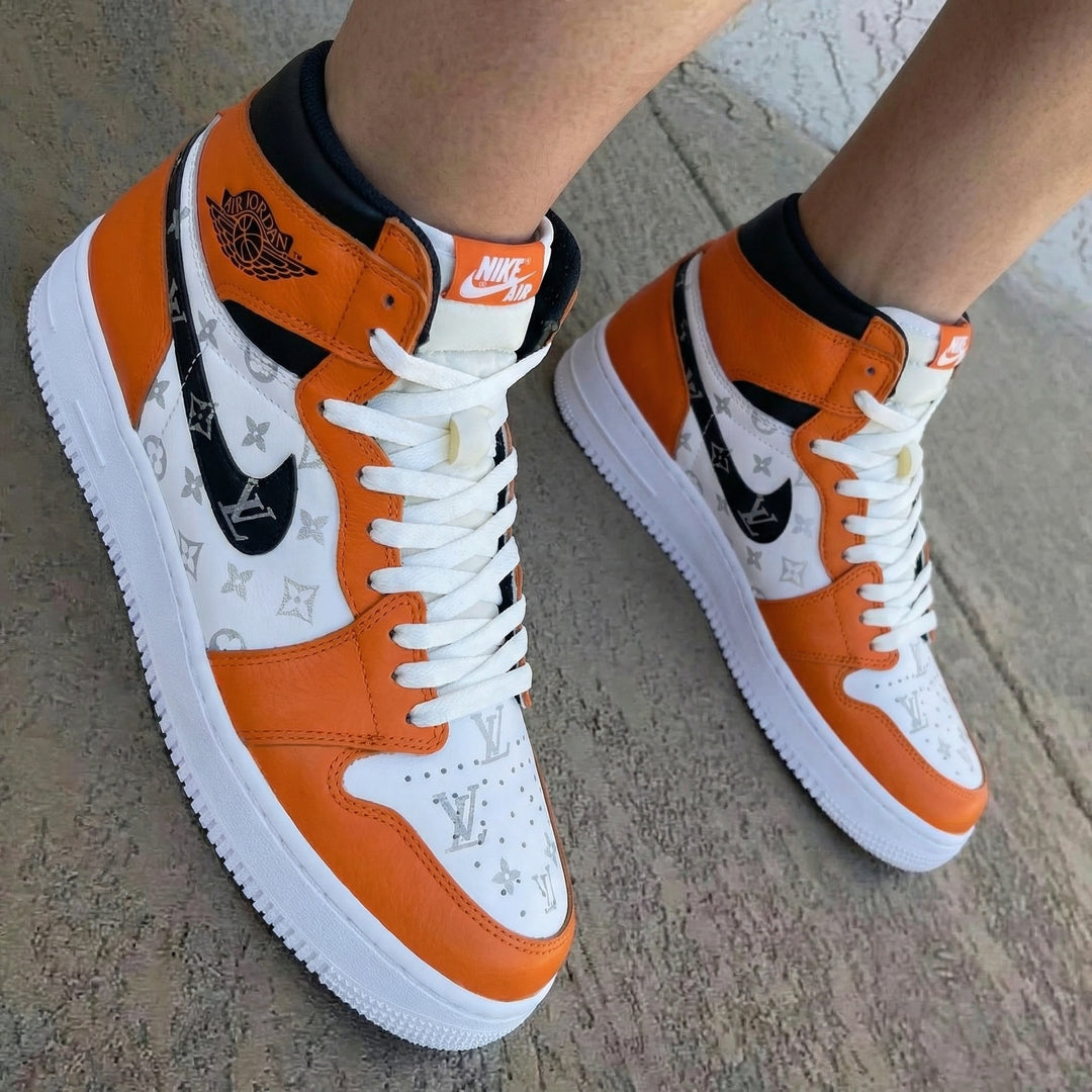 LV Pattern Orange White Custom Air Jordan 1