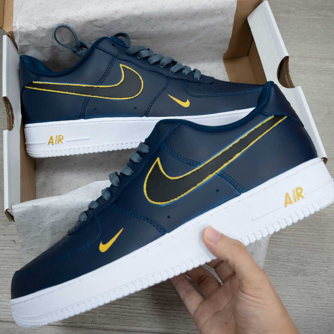 Be bold and take a risk with Black Dark Blue Yellow Custom Air Force 1! This Custom sneaker is made for adventure and will inspire you to push your limits and stand out. Take on the world with these fearless sneakers! Designed for daring souls, the Black Dark Blue Yellow Custom AF1 is your ticket to endless possibilities and unstoppable style.